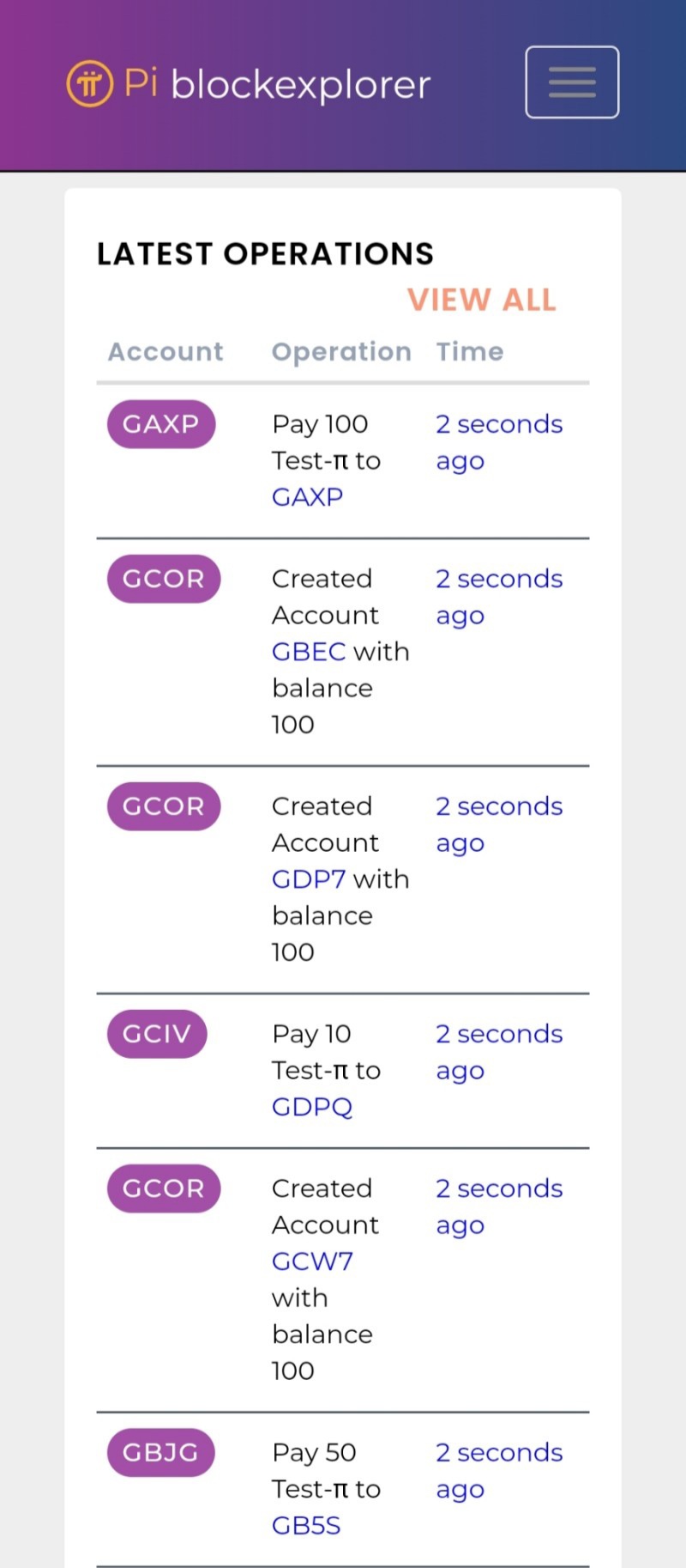 파이 코어팀은 파이 블록체인의 모든 트랜잭션을 볼 수있는 생태계 앱인 파이 블록 탐색기를 구축했습니다. 현재 테스트넷 단계에서는 테스트-파이 트랜잭션 만 사용할 수 있지만, 메인넷으로 전환하면 블록 탐색기가 실제 Pi 트랜잭션을 문서화합니다. 위의 버튼을 클릭하여 확인하십시오!