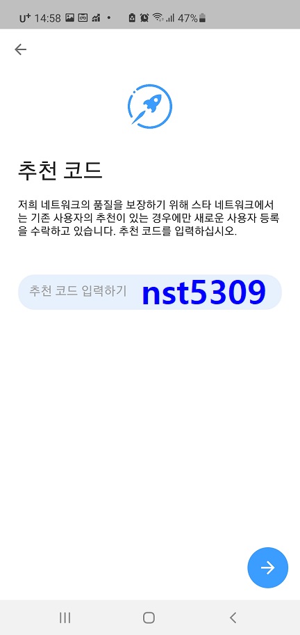 3. 추천 코드에 nst5309 를 입력합니다.