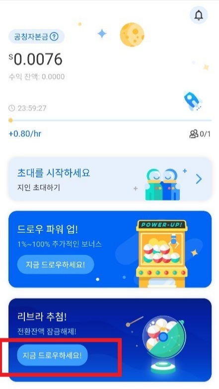 11. 리브라 추첨! 12시간마다 랜덤으로 리브라 당첨 -> 전환잔액 잠금해제!