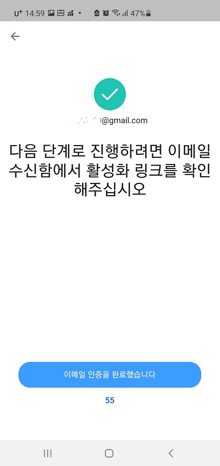 6. 가입시 등록된 이메일로 가서 파란글씨를 클릭합니다.