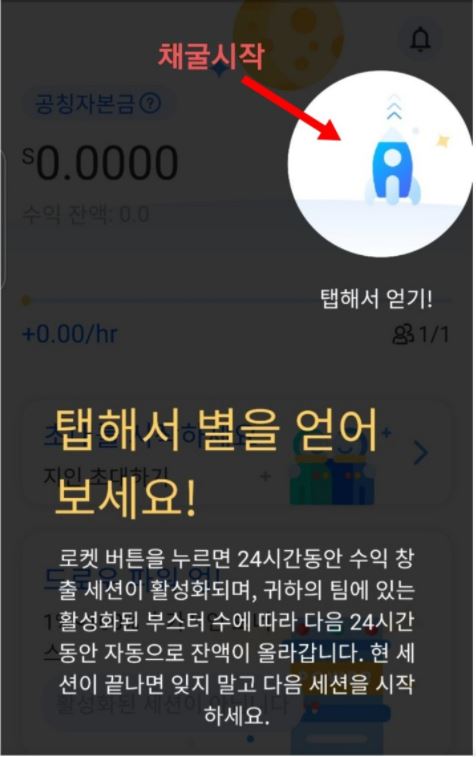 * 로켓을 24시간 마다 클릭하시면 자동 채굴 됩니다.