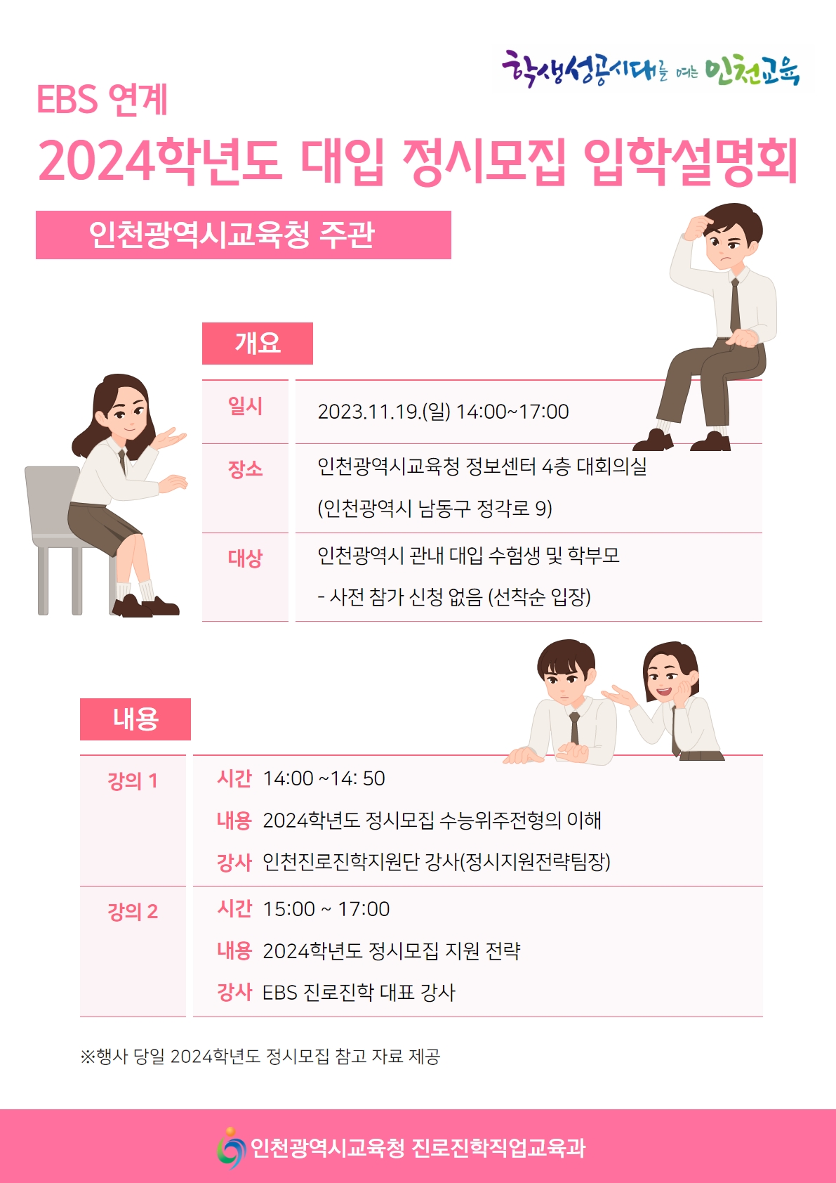 ○ 대상 : 인천광역시 관내 대입수험생 및 학부모