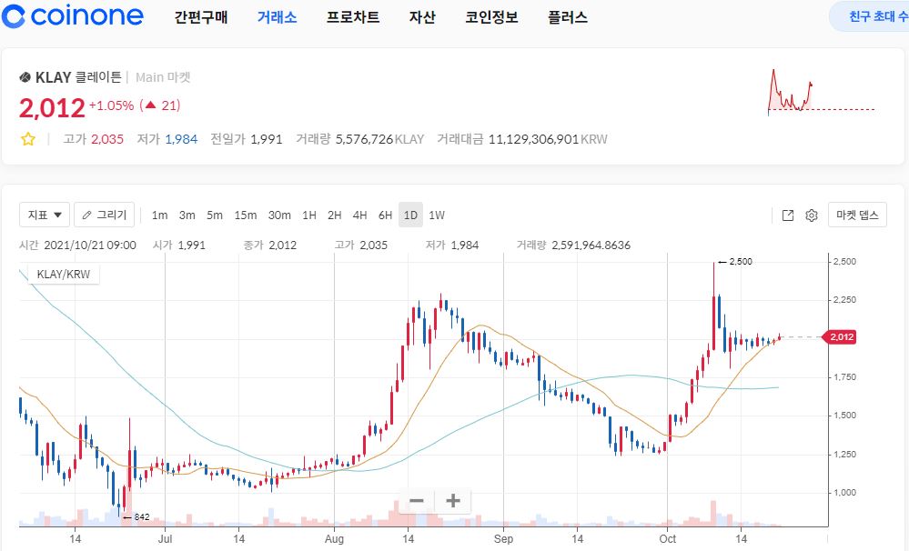 현재 시점에서 코인원을 가입해야 하는 이유는 바로 카카오 코인인 클레이 토큰을 현금화 할 수 있고,
