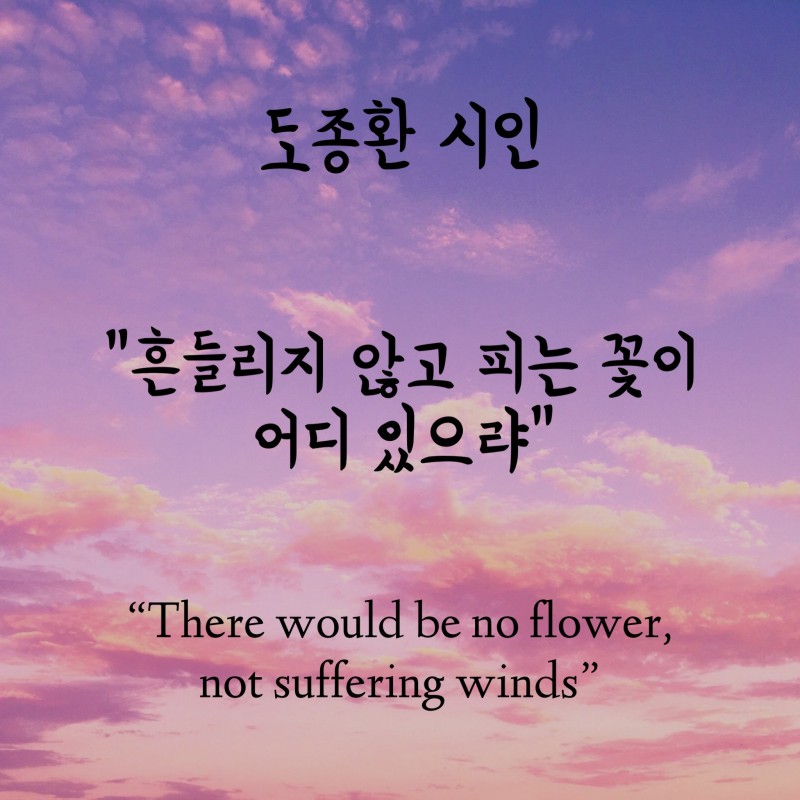 "흔들리지 않고 피는 꽃이 어디 있으랴"
