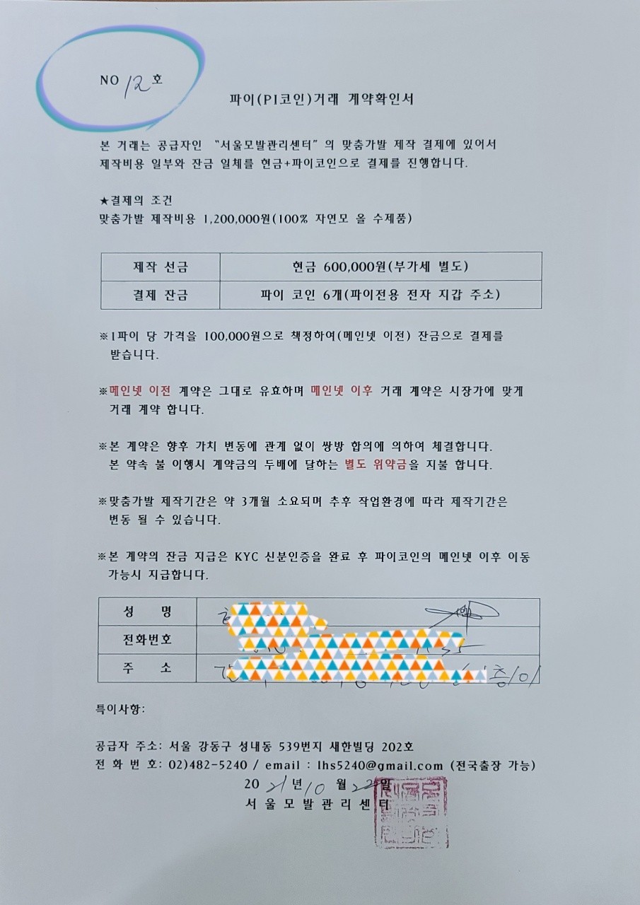 파이코인 합의계약서 - 거래 확인서 (총 12건) 을 소개합니다.