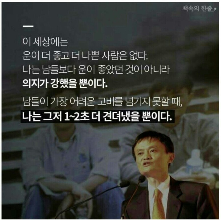 22. 이 세상에는 운이 더 좋고 더 나쁜 사람은 없다. 나는 남들보다 운이 좋았던 것이 아니라 의지가 강했을 뿐이다. 남들이 가장 어려운 고비를 넘기지 못할 때, 나는 그저 1~2초 더 견뎌냈을 뿐이다.