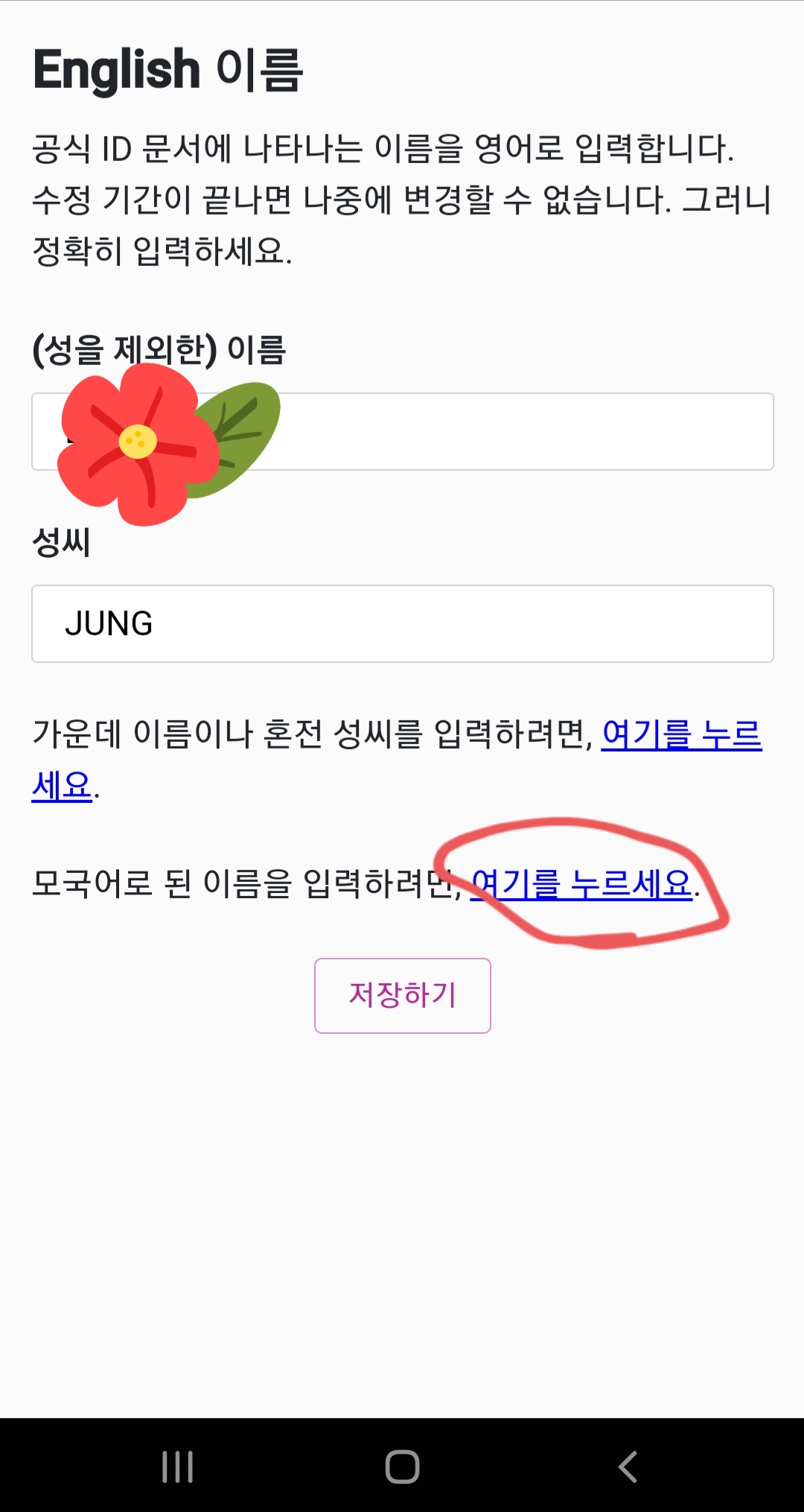 이름 변경 및 모국어 이름 입력하기 (참조)