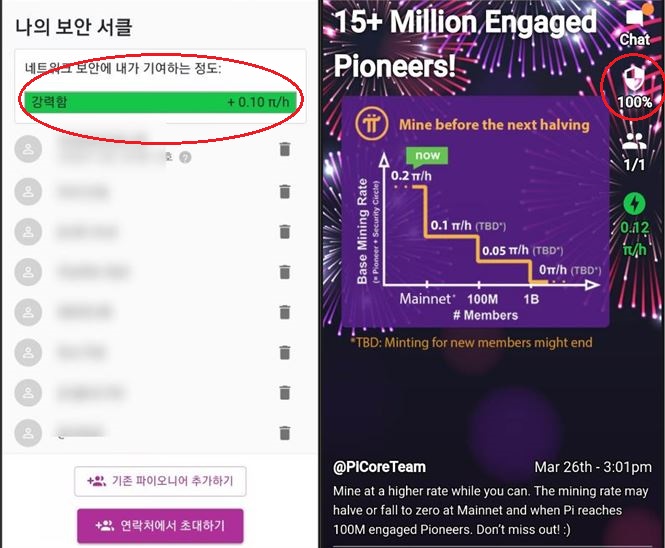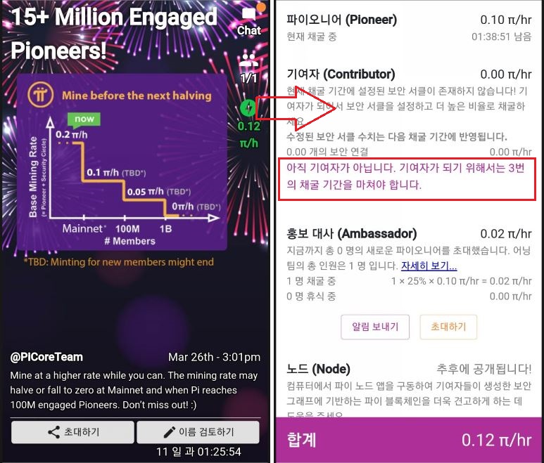 채굴속도 또한 0.1파이(시간당)가 추가 되어 더욱 빠른 속도로 채굴이 가능해집니다.