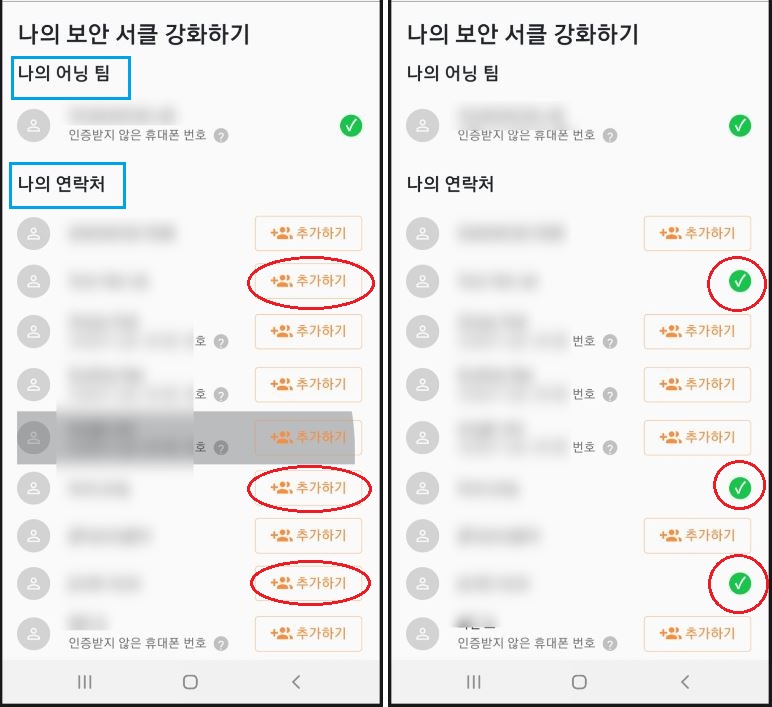 보안서클(방패) 은 5명이상 추가하면 100% 가 되니 앞으로 4명을 더 보안서클에 추가해 볼께요 !!