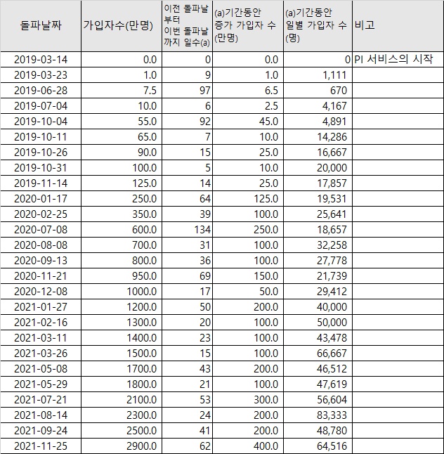 그래서 오늘은 지금까지의 가입자 증가 추세를 한번 보도록 하겠습니다.