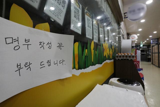12일 서울의 한 식당에 코로나19 방역 정책에 따라 명부 작성을 요청하는 안내문이 붙어 있다. 13일부터는 일부 예외를 제외하고는 원칙적으로 전자출입명부 또는 안심콜 사용을 통해야만 식당 등을 이용할 수 있다. 뉴스1