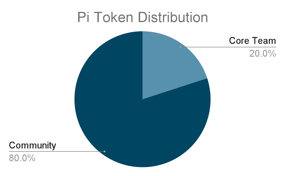 공급 분배는 2019년 3월 14일 백서의 원래 분배 원칙을 따릅니다. 주어진 시점에 Pi 네트워크에 순환 공급량이 아무리 많아도 Pi 커뮤니티는 80%, Pi Core 팀은 20%의 Pi의 총 순환 공급. 1000억 Pi의 총 최대 공급량을 감안할 때 커뮤니티는 결국 800억 Pi를 받고 코어 팀은 결국 200억 Pi를 받게 됩니다. 다음 파이 차트는 전체 분포를 보여줍니다.