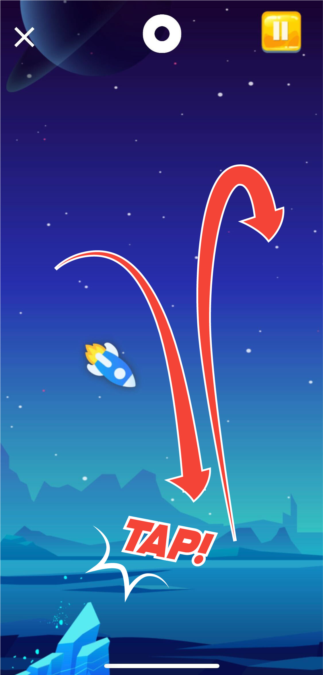 3. 시작하면 로켓이 땅에 떨어지기 시작합니다. 다시 탭하면 로켓이 부스트되어 위로 튕겨져 나온 다음 로켓이 계속해서 다시 떨어집니다.