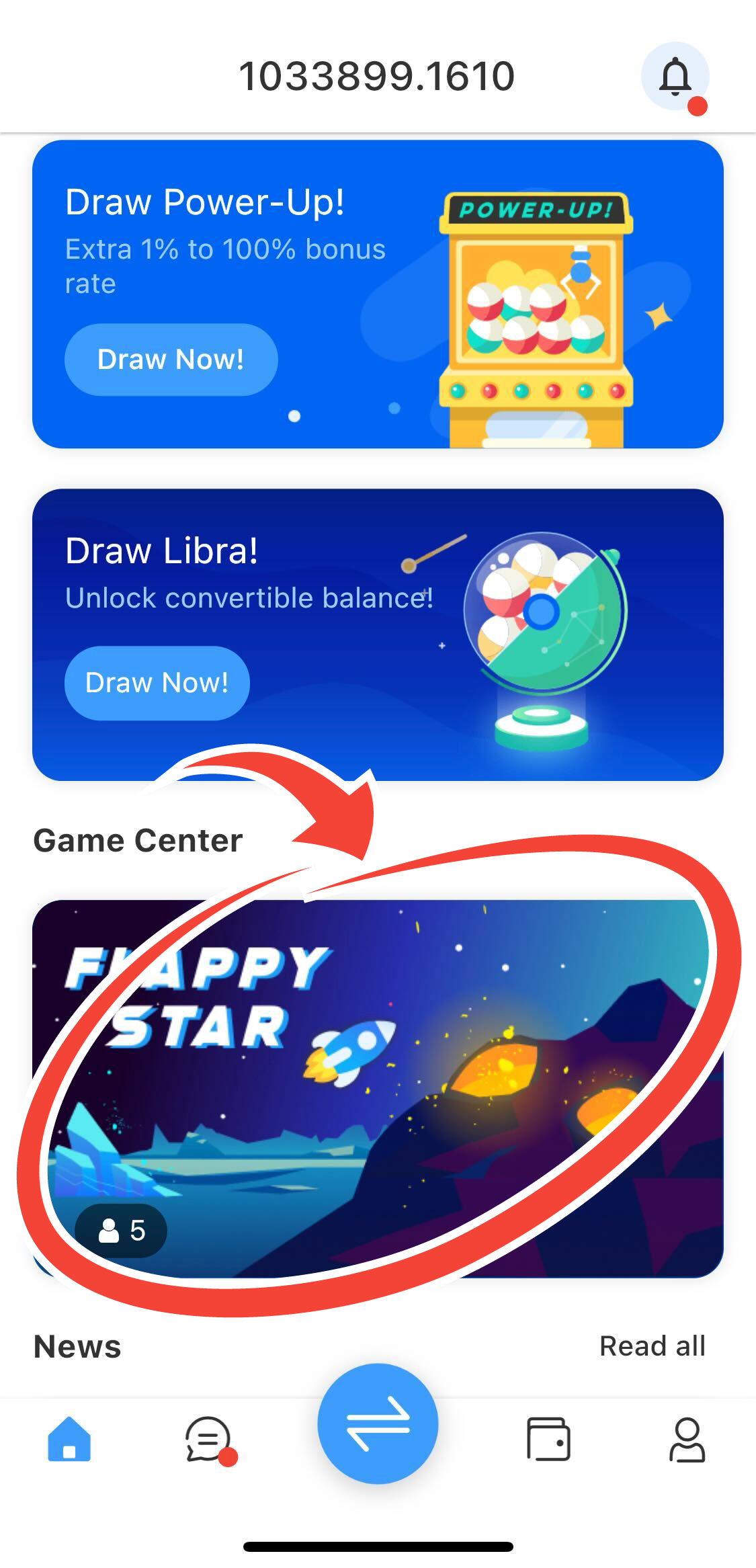 1. 먼저 앱의 홈 화면에서 Game Center를 찾을 수 있습니다. Flappy Star는 우리의 첫 번째 게임이며 나중에 더 많이 나올 것입니다! 연습 또는 토너먼트 모드를 선택할 수 있습니다. 별 잔액을 사용하지 않고 연습 모드에 참여할 수 있으며 우수한 결과에 따라 최대 50%의 보너스 적립률을 얻을 수 있습니다. 최고 순위에 따라 일일 가격 풀을 공유하는 일일 토너먼트에 참가하려면 1스타 토큰을 칩에 넣어야 합니다. 나중에 우리는 세 번째 모드인 1 대 1도 게시할 것입니다.