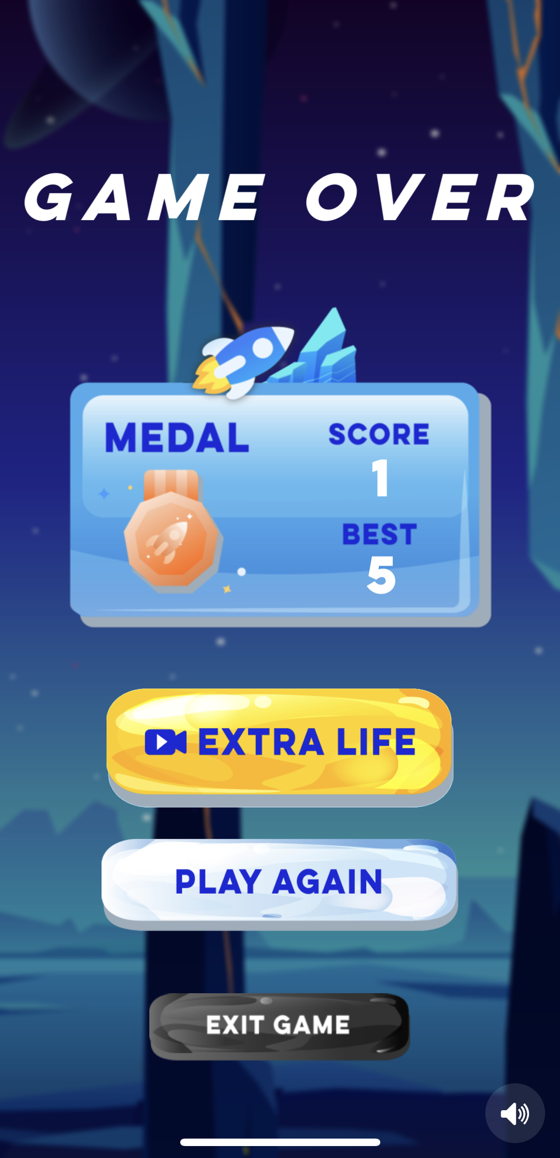 5. 로켓이 장벽에 충돌하거나 땅에 떨어지면 게임이 종료됩니다. 다시 플레이할 수 있으며 연습 모드에서는 별 토큰을 소모하지 않습니다(그러나 토너먼트 모드에서는 별 토큰 1개 소모). 또는 2개의 생명으로 새 게임을 시작할 수 있는 Extra Life를 선택하여 추가 보너스 비율을 위해 더 높은 레벨에 도달할 기회를 높일 수도 있습니다!