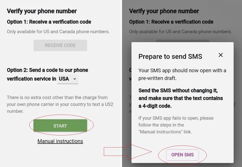 2. SATRT -> OPEN SMS -> 4 자리 숫자가 문자로 옴 -> 재전송 하면 인증하기 완료!