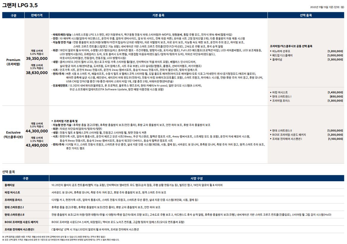 디 올 뉴 그랜저 - 가격표 (The all-new GRANDEUR) 7세대 그랜저