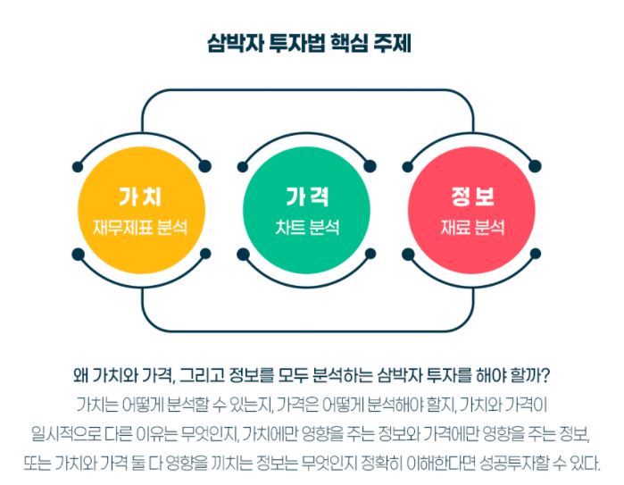 그러기 위해서는 ‘가치(재무제표 분석)’, ‘가격(차트 분석)’, ‘정보(재료 분석)’를 동시에 분석할 줄 알아야 한다.