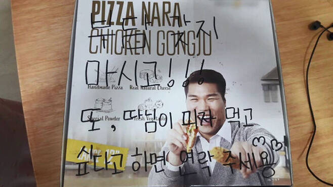 조금 후 김씨 집으로 피자가 도착했고, 피자 상자에는 큼직한 글씨로 "부담 갖지 말고 아이가 먹고 싶어 하면 또 연락 달라"는 메모가 적혀 있었다.